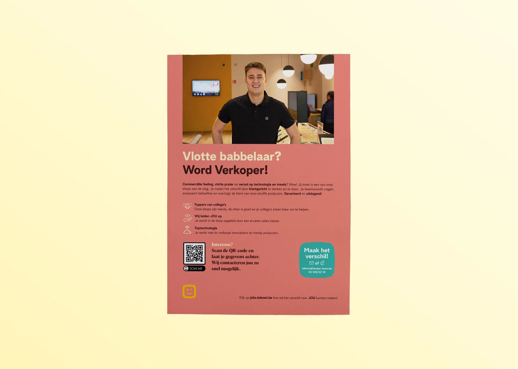 Voor Telenet ontworpen we content voor een rekrutering campagne.